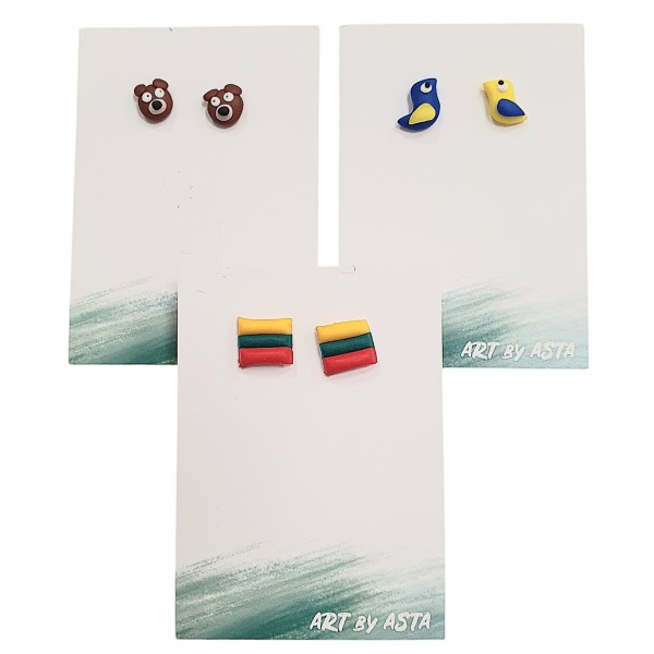 • Auskarai yra rankų darbo iš polimerinio molio.