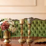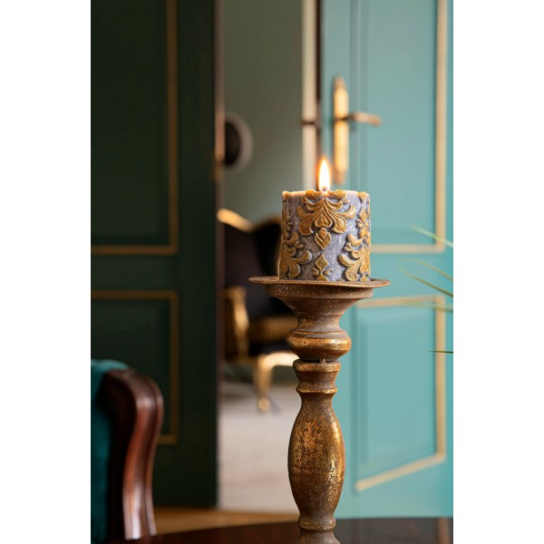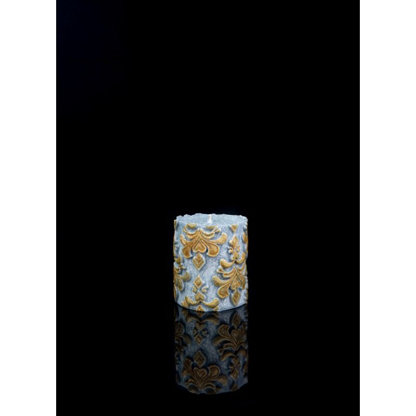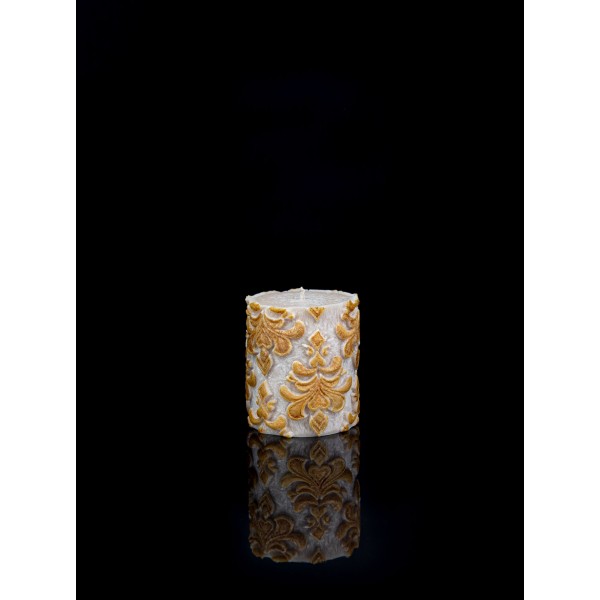 Įspūdinga, baroko stiliumi dekoruota natūralaus palmių vaško žvakė.