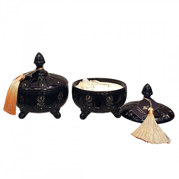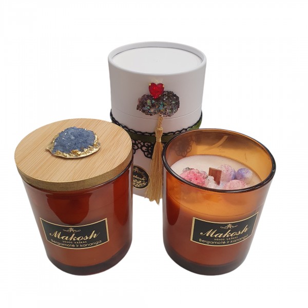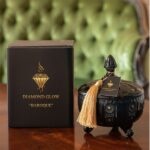 DIAMOND GLOW kompanijos sukurta išskirtinio dizaino, natūralaus sojų vaško, kvepianti žvakė, kurios kvapai įkvėpti remiantis garsiais mados namų kvepalais, o vidus dekoruotas žėrinčiomis aukso gėlėmis iš vaško.