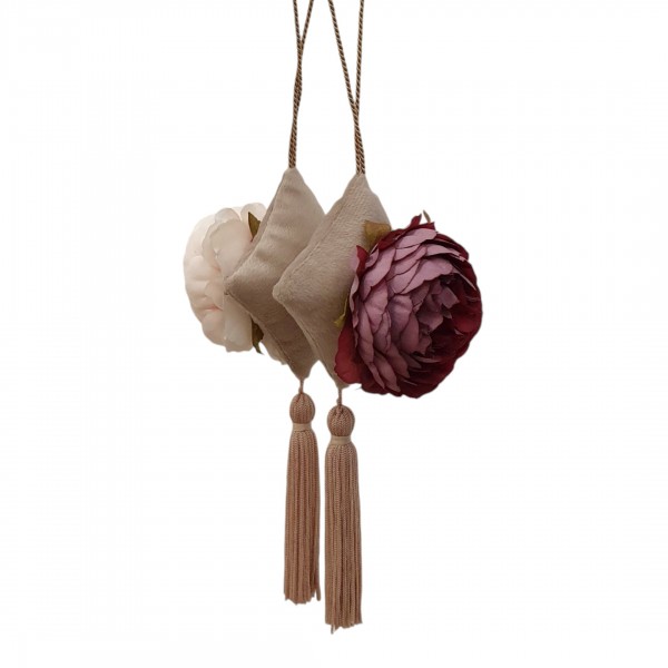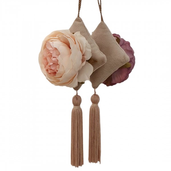 Rankų darbo prabangi dekoruota pagalvėlė idealiai tinka automobilio kvėpinimui, o taip pat tinka kabinti namuose, gali būti kabinama ant durų rankenos ar Jūsų drabužinėje.