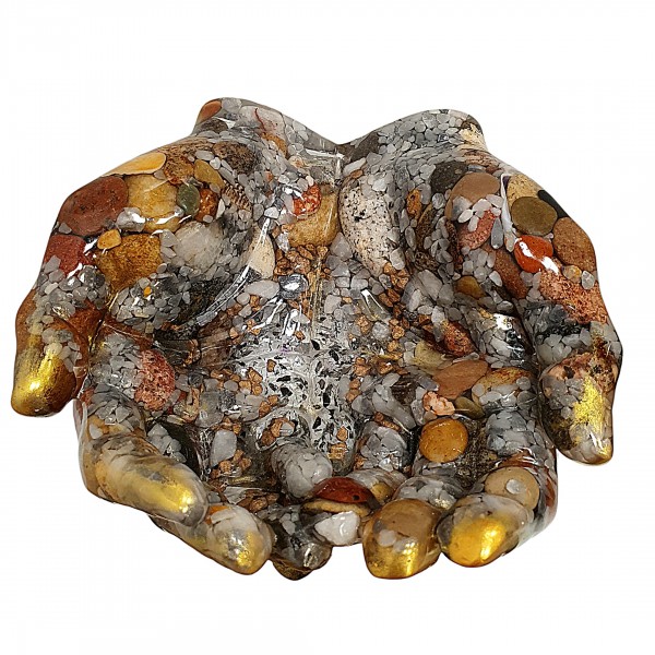 Tikras meno kūrinys ir išskirtinumas!Rankų darbo žvakidžių komplektas, kuriame natūralūs akmenys, kriauklytės ir kiti gamtos lobiai įamžinti epokside.